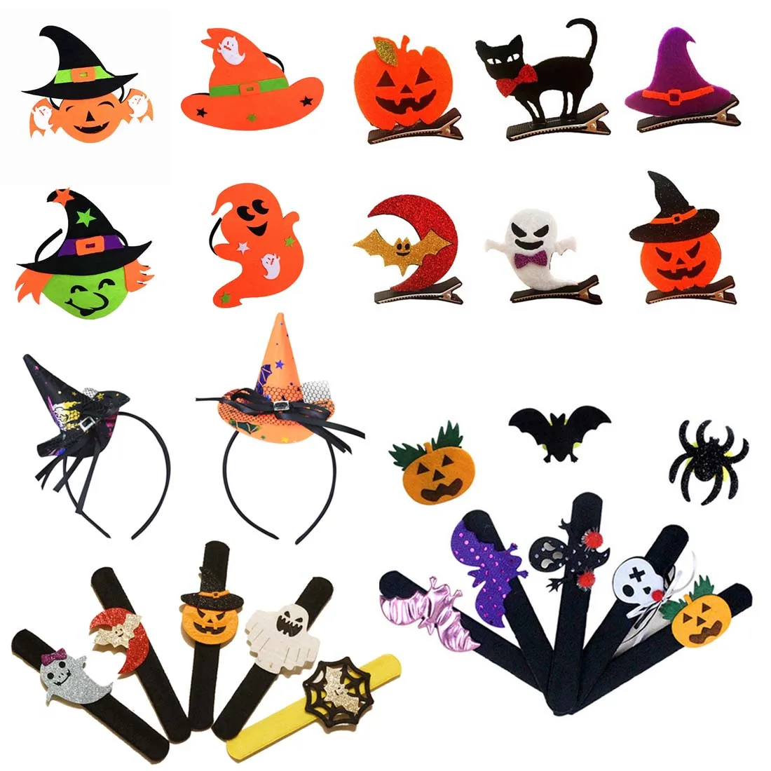 HOT Sale 6 Girls Kit Halloween Decor Head Band Hat Shape Head Hoop Carnival Hair Clip Children Funny Slap Br