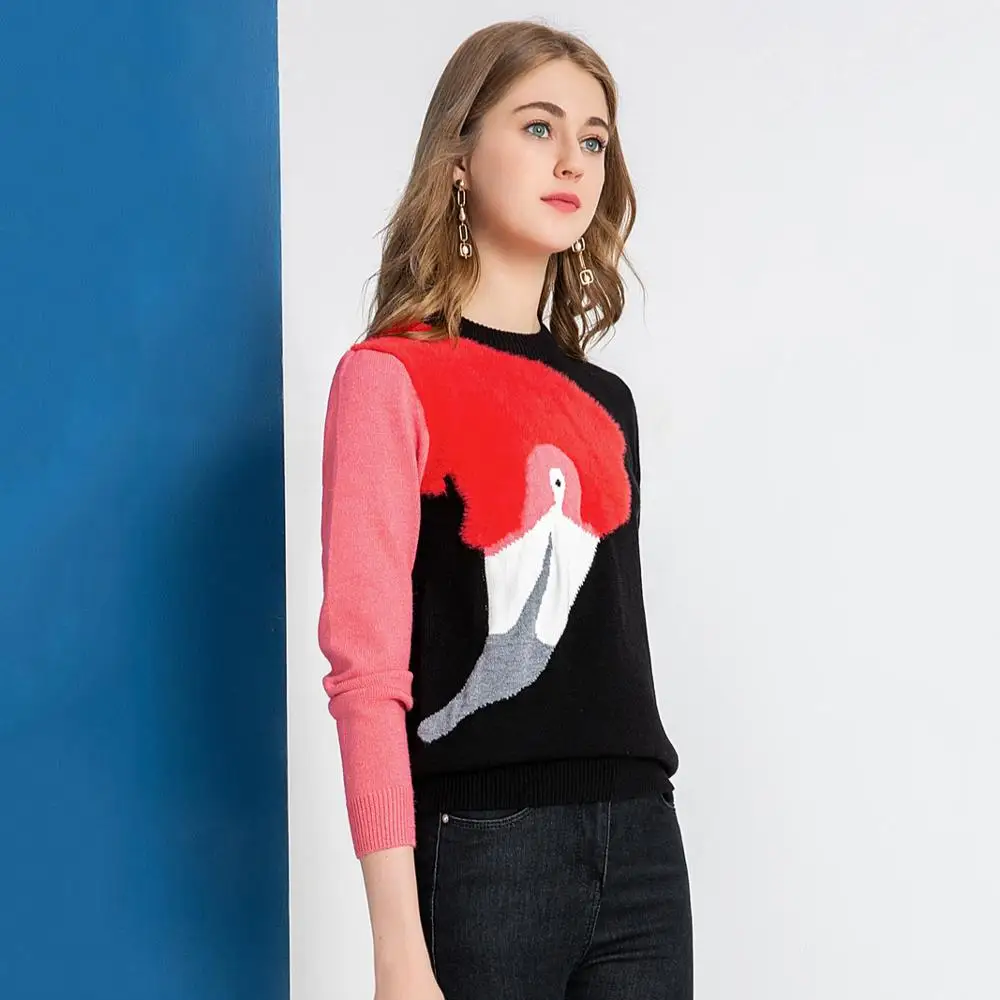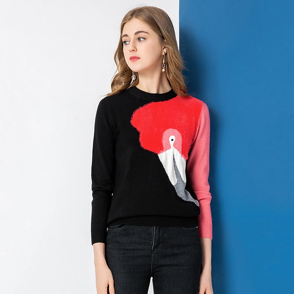 Autumn Winter Luxury Runway Fashion Knitted Sweaters Flamingo 3D Plush Pullovers Patchwork Jumper w