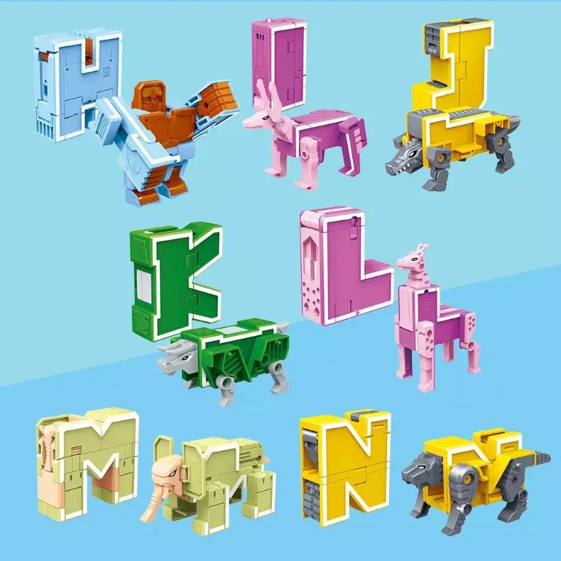 GUDI 26 English Letter Transformer Alphabet Robot Animal Creative Educational Action Figures Buildi