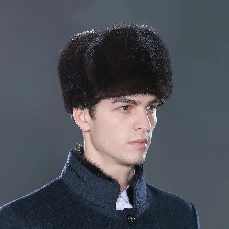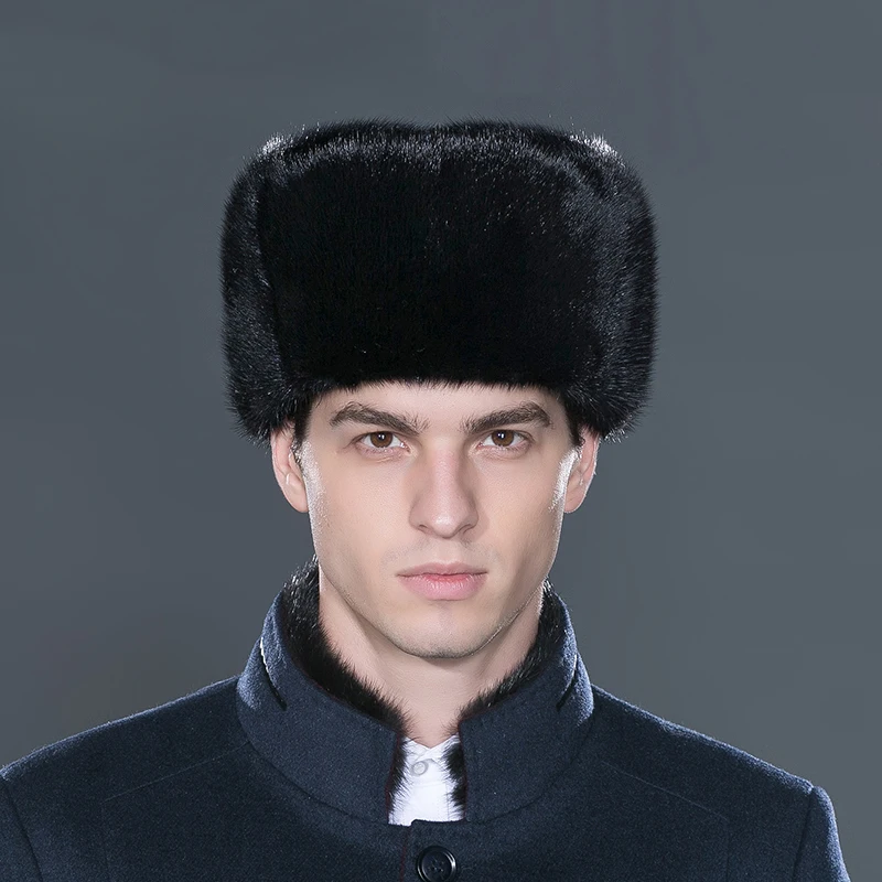 LTGFUR Bomber Men's Hats Warm Mink Fur Hat Bomber Ushanka Aviator Snow Caps With Ear Flaps Russian