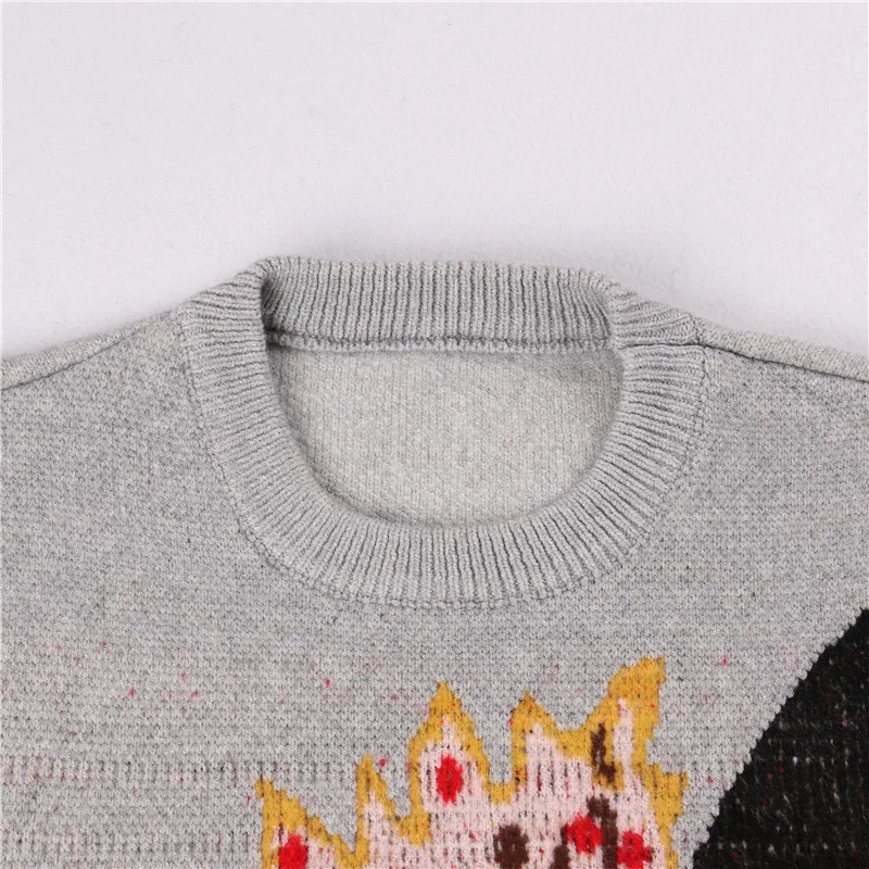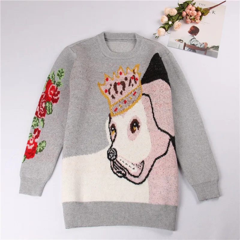 Women Sweater Animal Jacquard Dog And Flower Jumper Plus Size Jersey Loose Warm Pullovers Long Slee