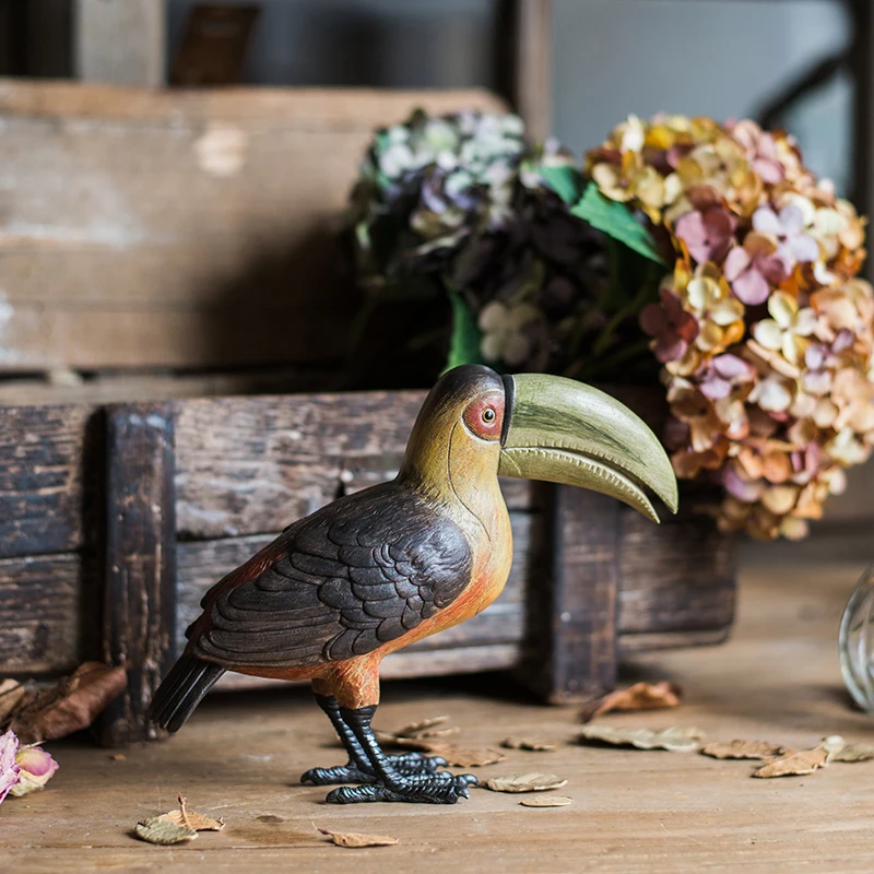 Amazon Rain Forest Tropical Toucan Parrot Bird Resin Statue for Study Living Room Home Decoration
