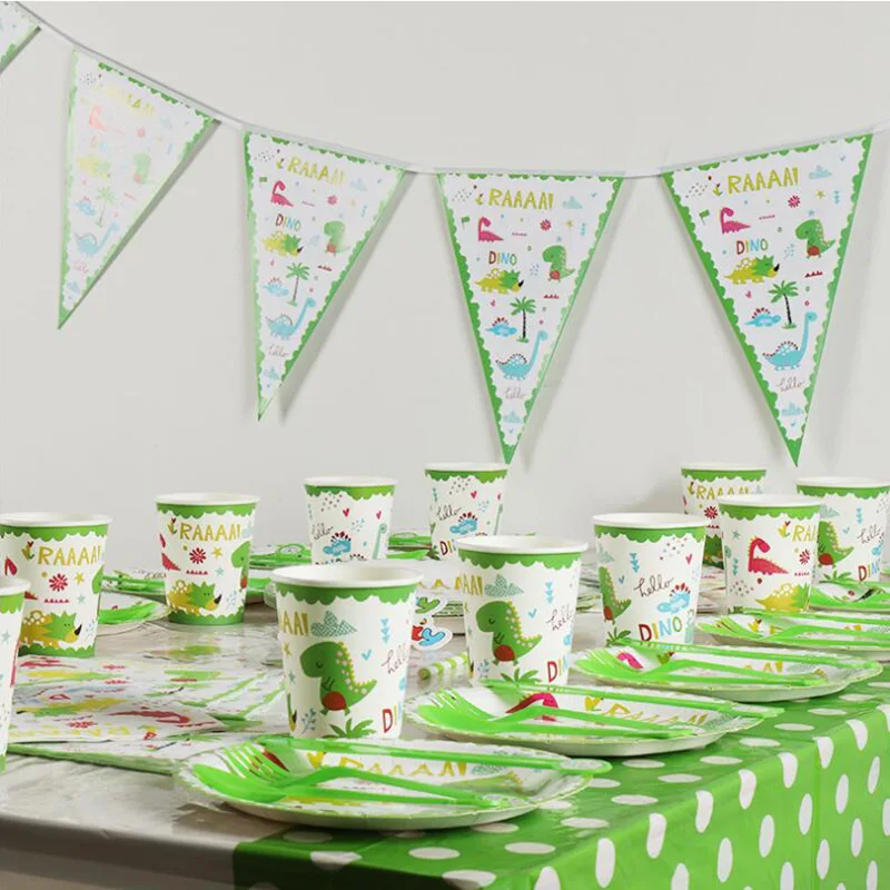BEST SELLER 2019 New Dinosaur Theme Children's Birthday Party Supplies Disposable Cutlery Set Paper Cap Tray Ta